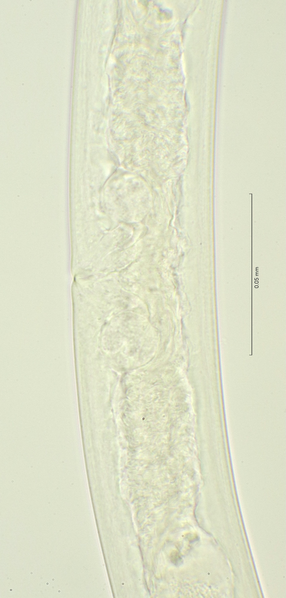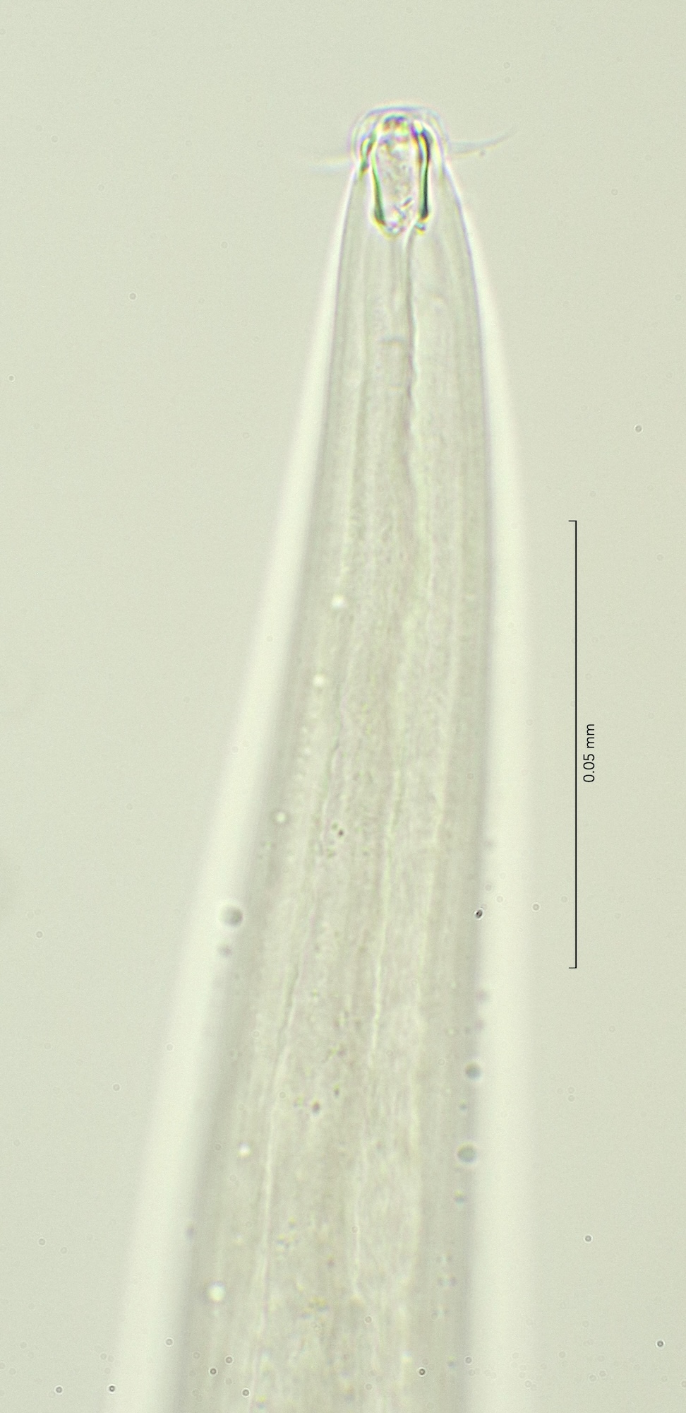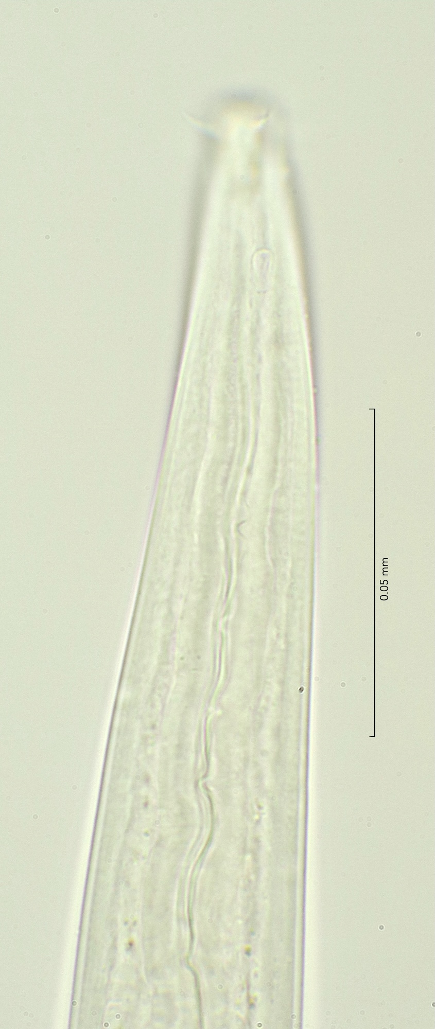 Buccal cavity depth 13mu, cephalic setae 8 mu, amphid diameter 0,2 cbd, positioned at 23 mu (2 hd) from front end. Cylindrical part of the tail 62%.