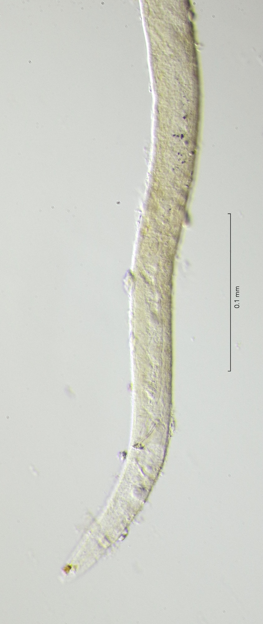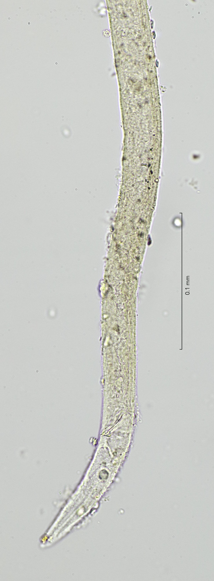 buccal cavity depth 20mu, labial setae 5mu, cephalic setae 20 mu, amphid diameter 7mu (0,3 cbd), positioned at 27 mu from apical end, spicula 25mu